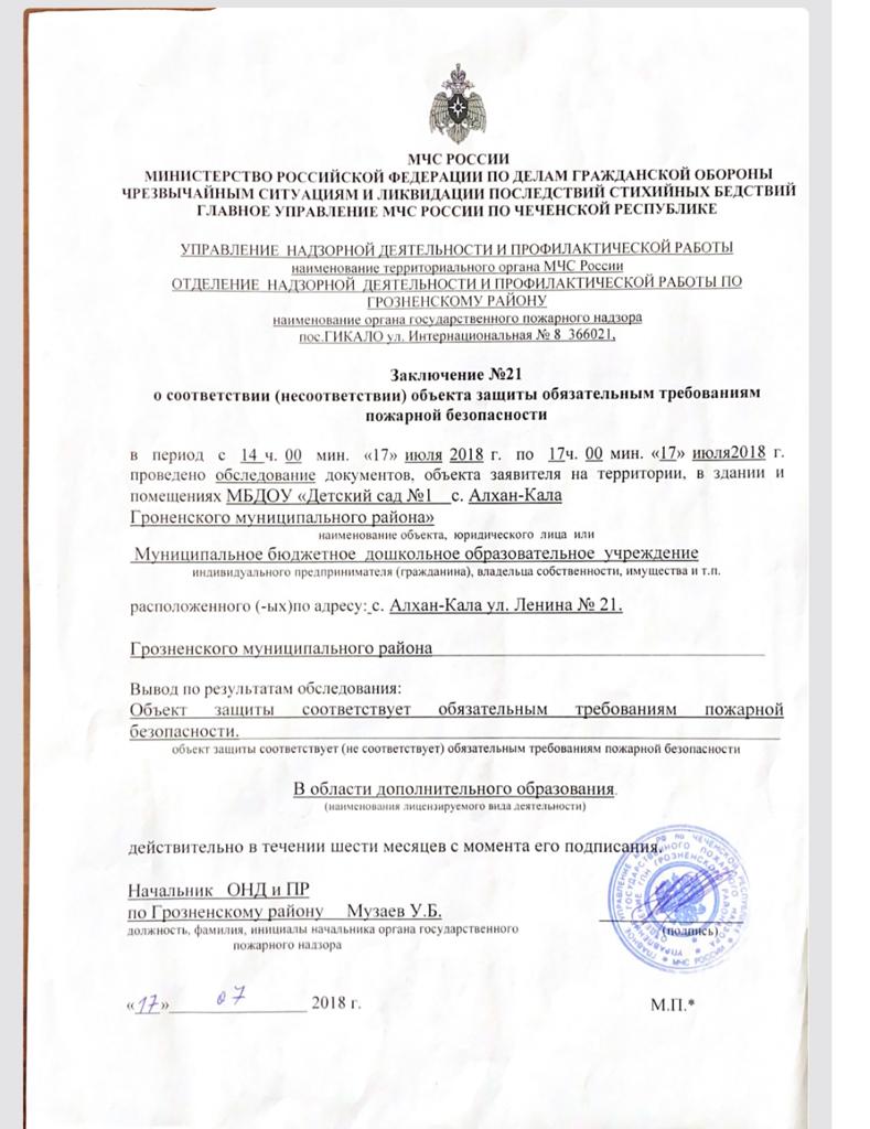 Документ о соблюдении норм безопасности
