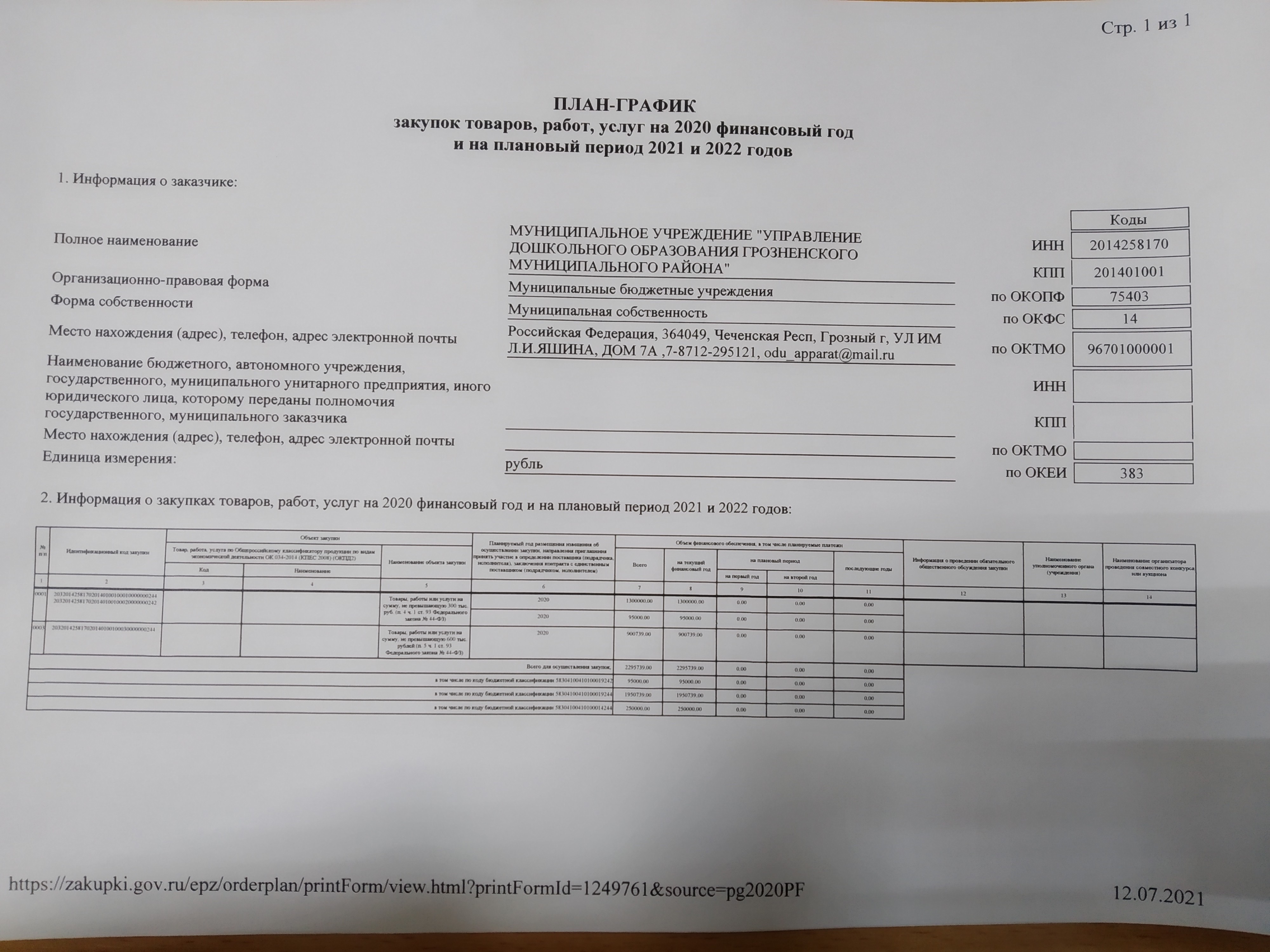 План-график закупок товаров на 2020 г.