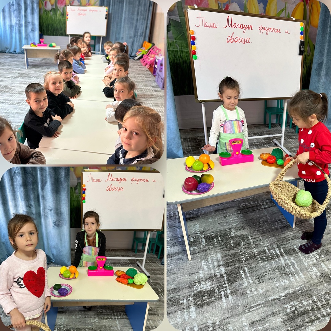 Цель: Закрепить знания детей о понятии «магазин», знания об овощах и фруктах.